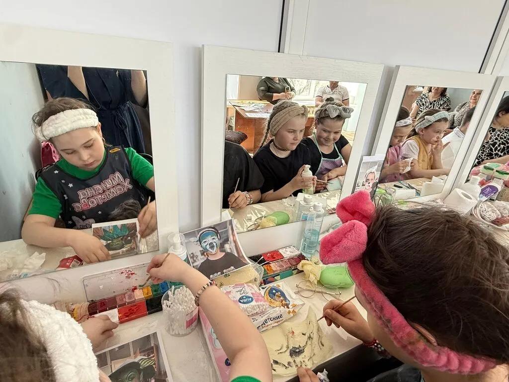 Особенно тёплой атмосферу сделал тот факт, что к процессу присоединились родители. Они не только наблюдали за работой детей, но и сами попробовали себя в роли гримёров, помогали с образами и с интересом задавали вопросы преподавателю.